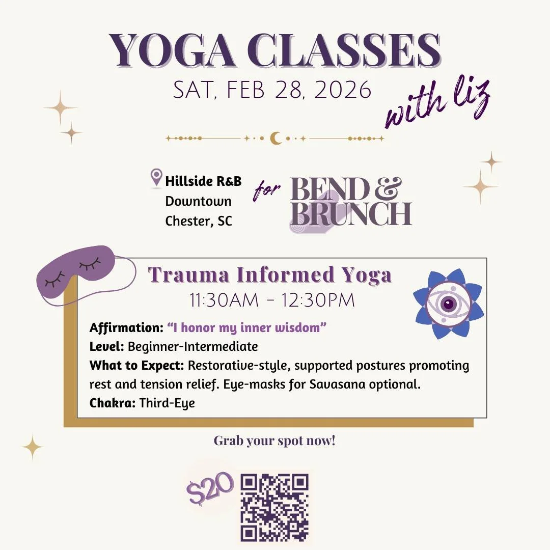 Liz completed a bachelor’s degree in Experimental Psychology (2017) and a master’s degree in Applied Clinical Psychology (2020), both from the University of South Carolina. She is a licensed therapist in both South Carolina (LPC; Licensed Professional Counselor) and North Carolina (LCMHC; Licensed Clinical Mental Health Counselor). She began her clinical career in 2019 by working in case management in Aiken, SC at an inpatient psychiatric hospital, later followed by intensive outpatient care where she was a group therapy facilitator for both the Partial Hospitalization and Intensive Outpatient programs. She then began Private Practice in Huntersville, NC in 2021. Liz’s own life experiences led her to incorporate Yoga into her personal self-care practice, which illuminated a passion for integrating somatic-based interventions into psychotherapy.